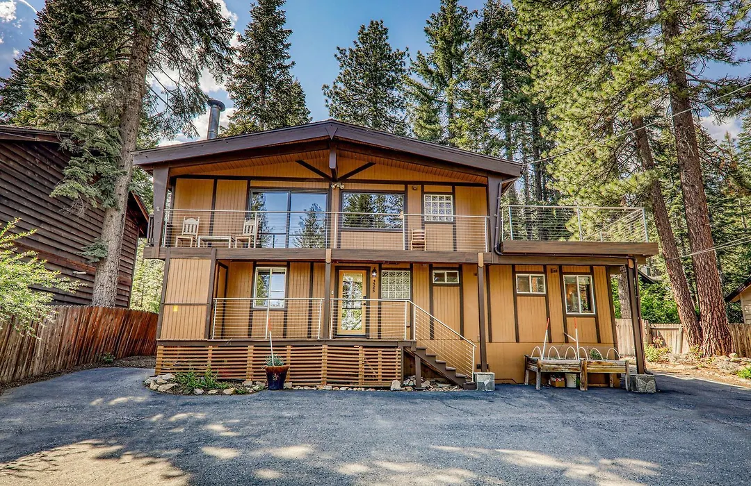 Retreat With Private Hot Tub Steps North Lake Tahoe villa offers patio views out of the windows.